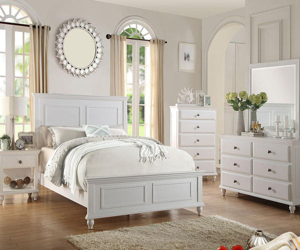 5pc includes: Bed frame, Dresser, Mirror, (1) nightstand, and Chest.